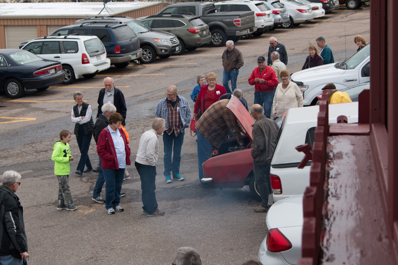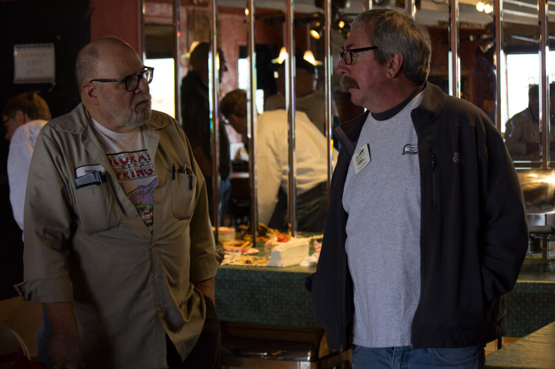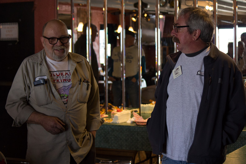 With so many folks in contact with Steve every day, it was difficult to keep a secret. Somehow we managed to maintain control and Steve had no clue that a surprise  was being planned to celebrate his 50 years in the Corvair repair business.  He did suspect something when he arrived at the usual Saturday lunch hangout and saw a lot more Corvairs and “regular” cars filling the parking lot. Seems about 85 of his friends were waiting to say “HI!” when he stopped in.  It was ultimately a very successful surprise.